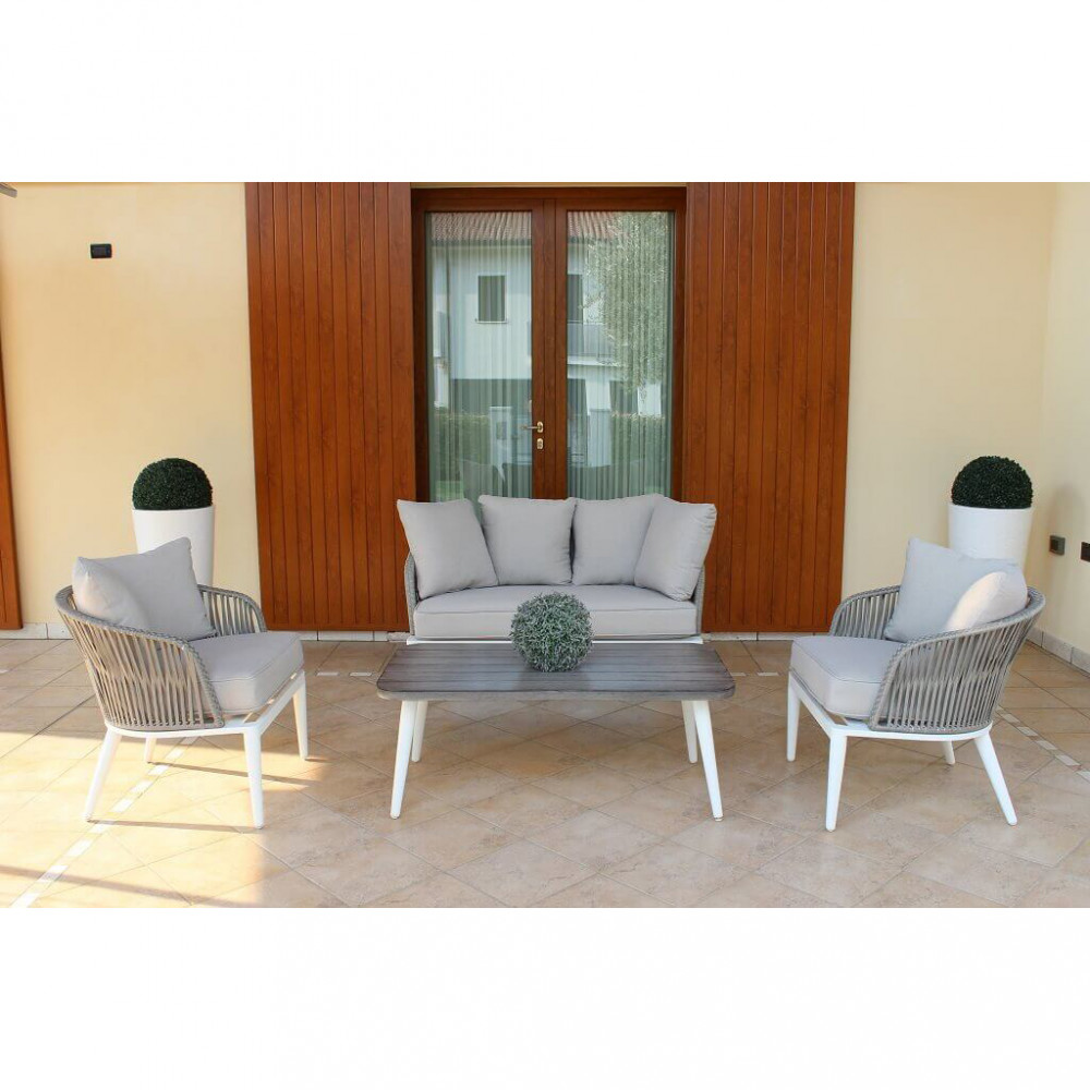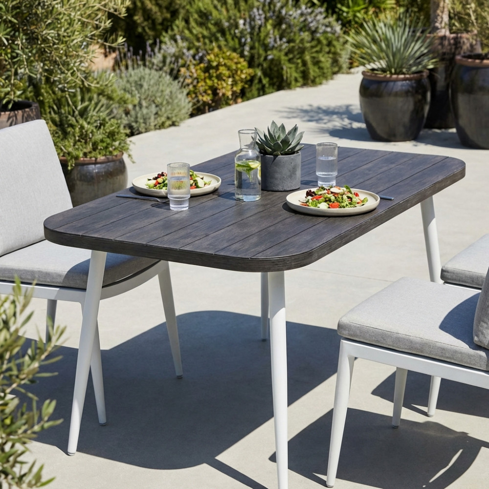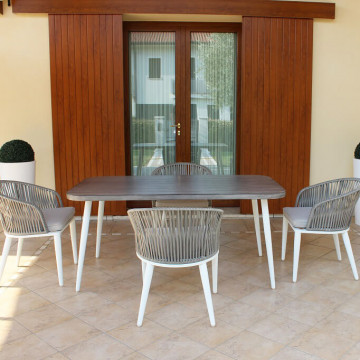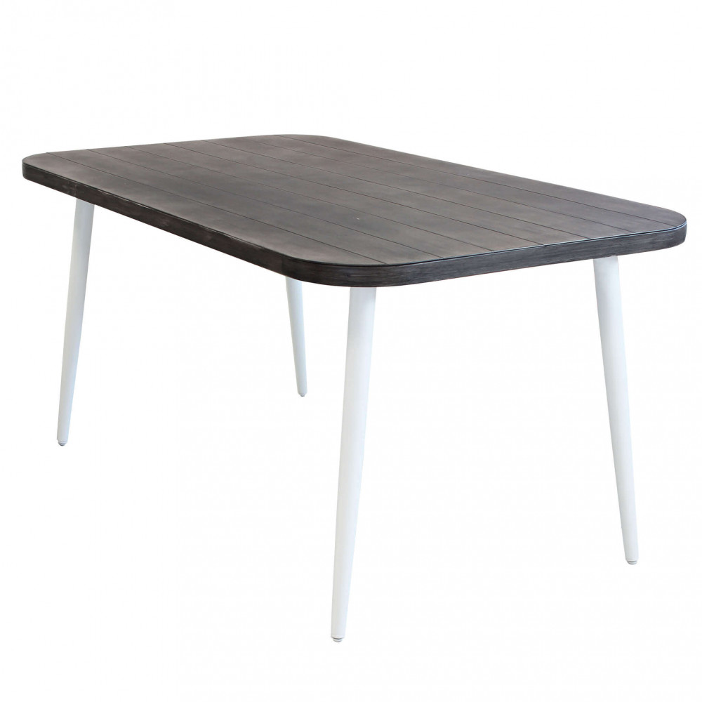 - Dati Tecnici Struttura in alluminio BIANCO Piano in alluminio con disegno simil legno GRIGIO Dimensioni: cm 160 x 90 x 74,5 h