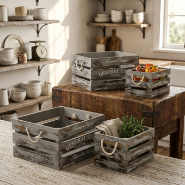 SET DI 3 CASSETTE IN LEGNO ROSELINE