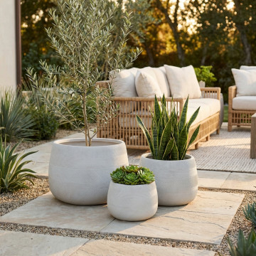 - Dati Tecnici Set di 3 vasi in fibra di sintetica color TAUPE, BEIGE o GRIGIO SCURO Dimensioni: G.55x55x37/M.42x42x29/P.29x29x20