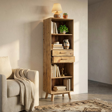 - Dati Tecnici Libreria con 2 cassetti e 4 ripiani in legno di pino riciclato Dimensioni: cm 60 x 40 x 190 h