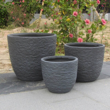 - Dati Tecnici Set di 3 vasi in fibra di sintetica color GRIGIO CHIARO, GRIGIO SCURO o BEIGE Dimensioni: G.44x44x39/M.35x35x30,5/P.27,5x27,5x24,5