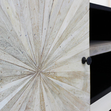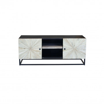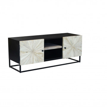 - Dati Tecnici Porta tv con decoro naturale con 2 ante e 2 ripiani in legno di mango con struttura in ferro Dimensioni: cm 140 x 46 x 56 h