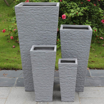 Set di 4 vasi in fibra di sintetica color GRIGIO CHIARO, GRIGIO SCURO o BEIGE Dimensioni: G.42x42x88/M.32x32x65,5/P.23,5x23,5x50,5/xS.18x18x38