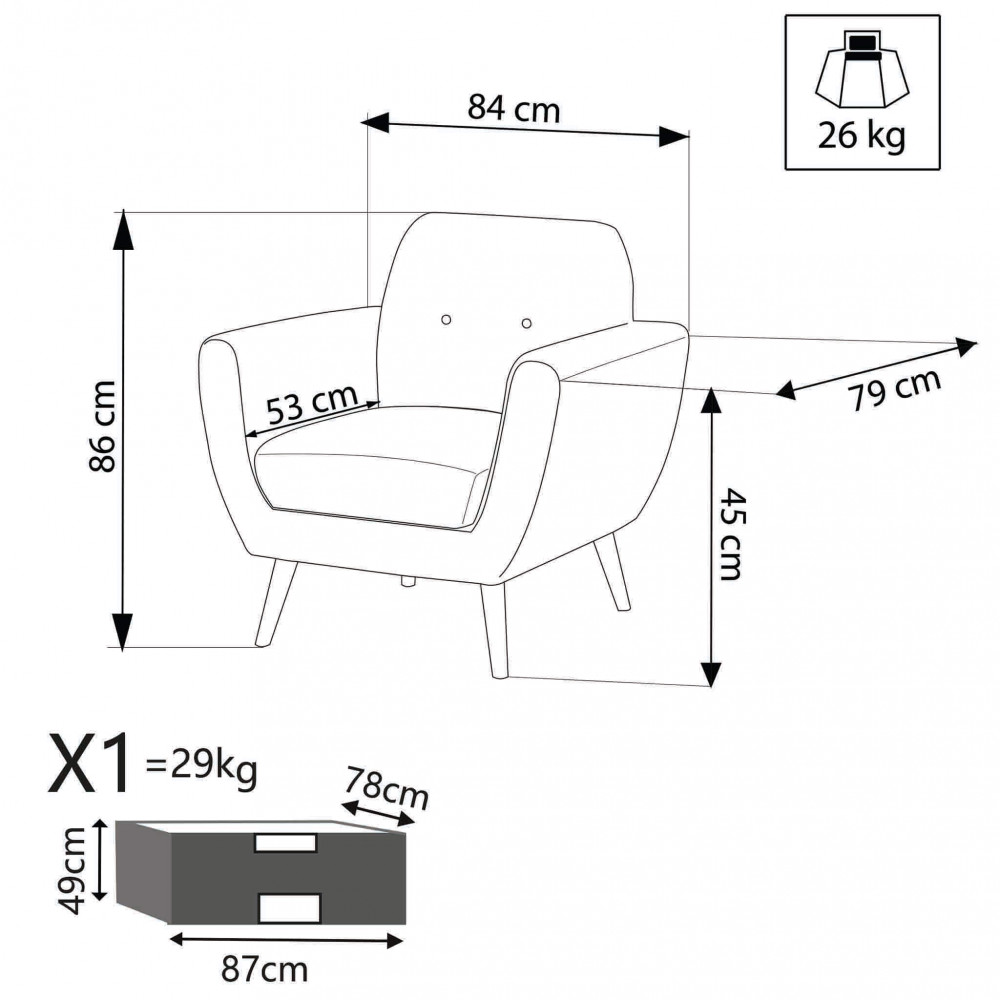 - Dati Tecnici Poltrona GRIGIO CHIARO, GRIGIO SCURO o BLU con bottoni e gambe in polipropilene Dimensioni: cm 84 x 79 x 86 h