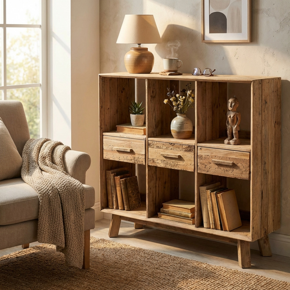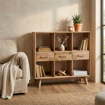 - Dati Tecnici Mobile con 6 ripiani in legno di pino riciclato Dimensioni: cm 120 x 40 x 110 h