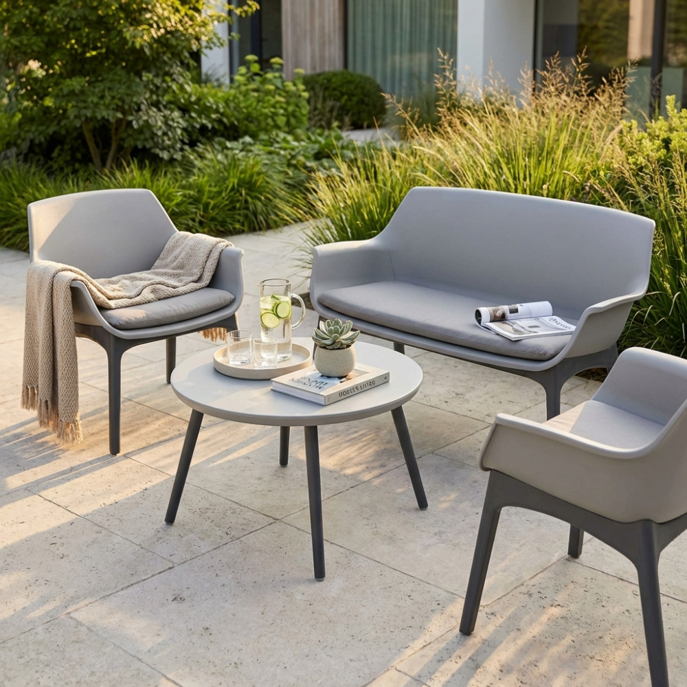 Struttura in plastica stampata, wicker ANTRACITE o TAUPE Dimensioni: D.118,5x67x76/P.67x68x76/T.80x50x45