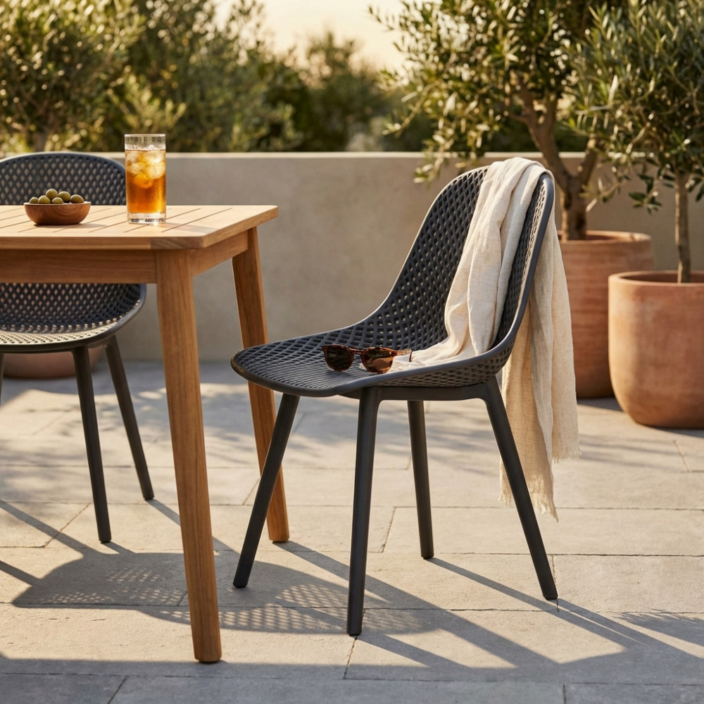 - Dati Tecnici Sedia ANTRACITE o TAUPE o BIANCA in polipropilene adatta sia per l'interno che per l'esterno Dimensioni: cm 55 x 46,5 x 85 h