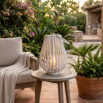 - Dati Tecnici Lanterna BIANCA in vimini e vetro Dimensioni: cmØ29/topØ16x36h/vetroØ10x15h