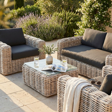 Struttura in legno, big rattan sbiancato Dimensioni: D.75x194x105/P.75x105x105/T.38x78x56