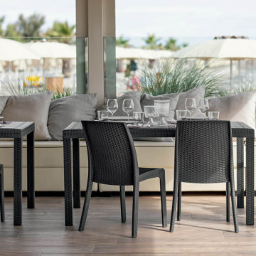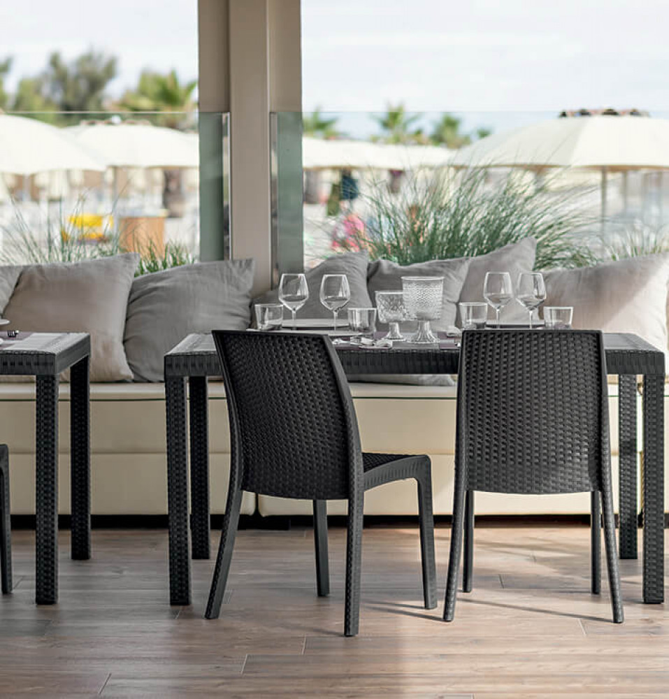 - Dati Tecnici Struttura in plastica stampata, wicker ANTRACITE o TAUPE MARRONE o BIANCO Dimensioni: cm 47 x 59 x 86 h