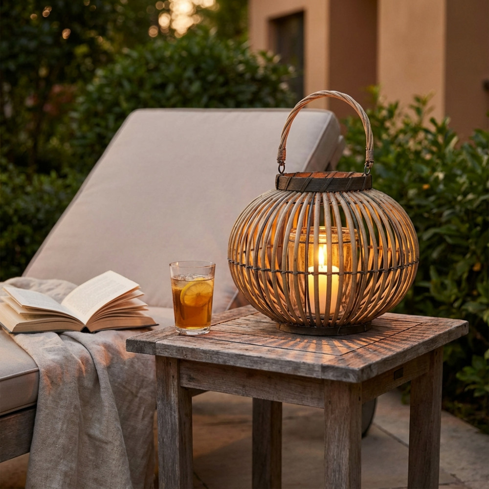 - Dati Tecnici Lanterna GRIGIA in vimini e vetro Dimensioni: cmØ29/topØ15x22h/vetroØ10x10h