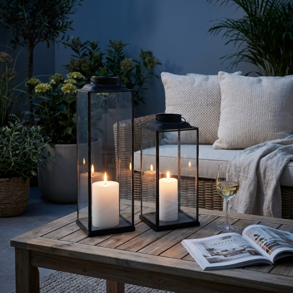 - Dati Tecnici Lanterna ANTRACITE in metallo e vetro Dimensioni: cm 18 x 18 x 42,5 h