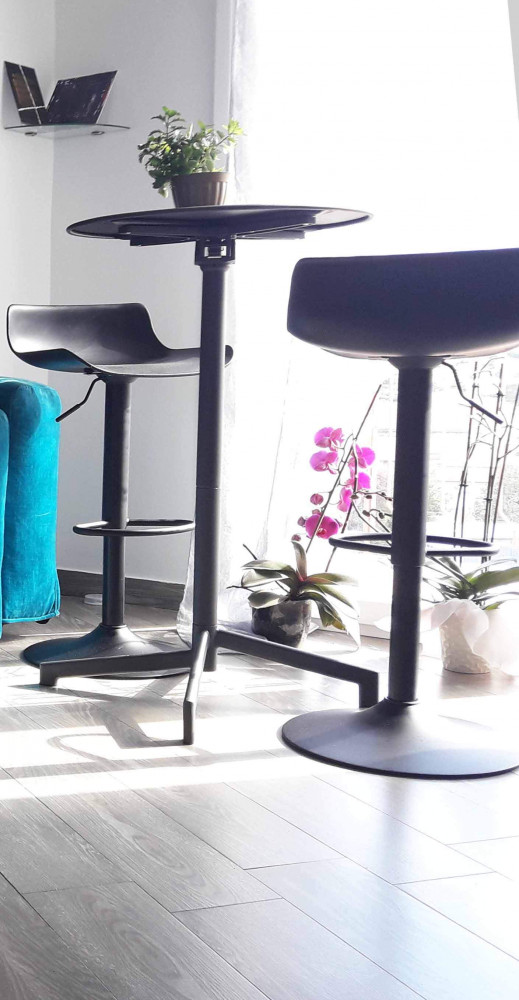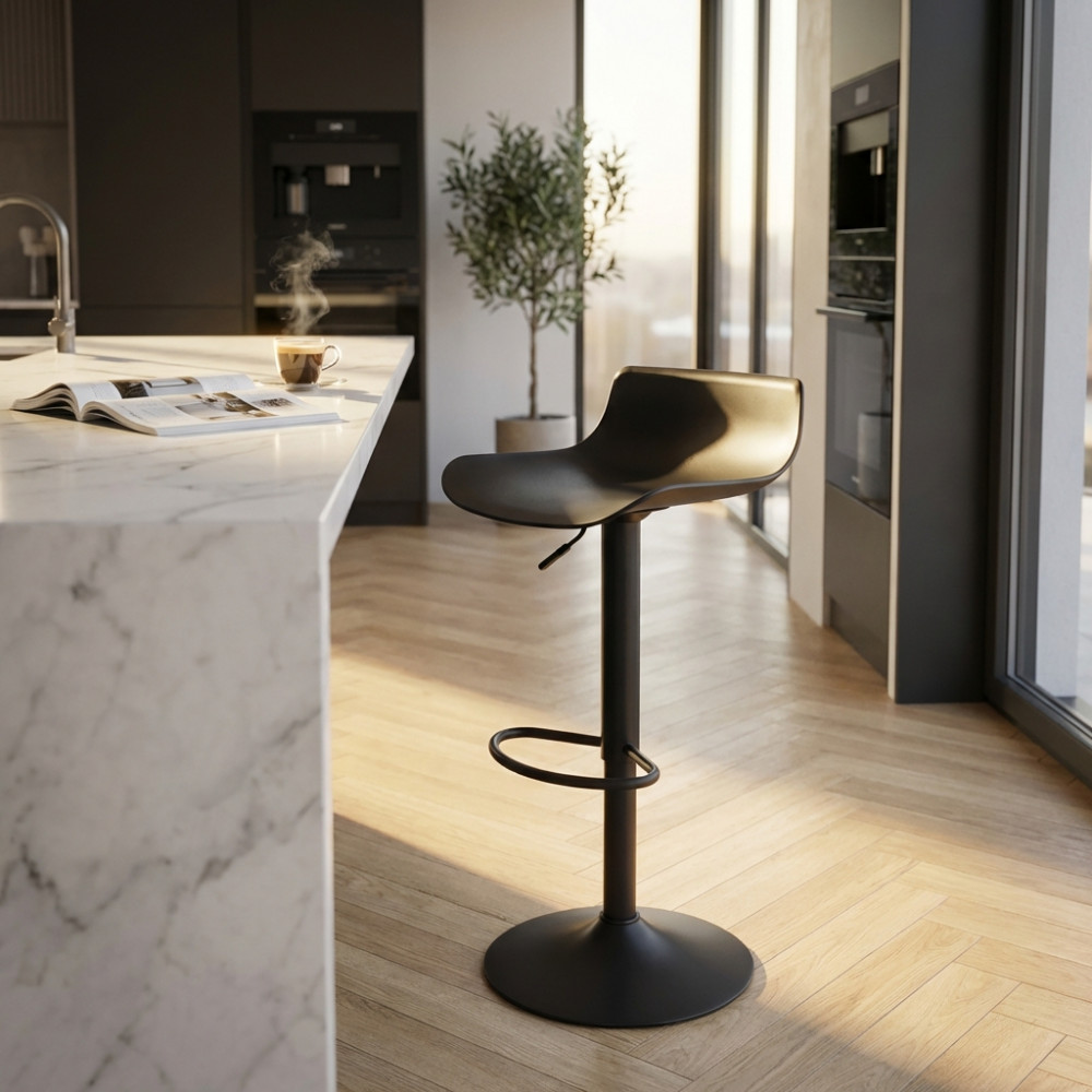 - Dati Tecnici Sgabello NERO o BIANCO o GRIGIO in polipropilene, base in metallo del colore della seduta Dimensioni: cm 43 x 44 x 75/96 h