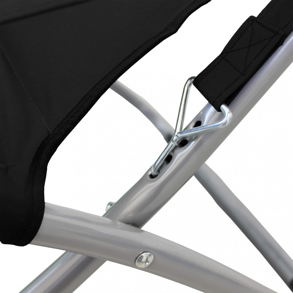Disponibile BLU o GRIGIO o NERO struttura in acciaio Ø 25 mm, portata max 120 kg, tessuto in PVC 600D Dimensioni: cm 65 x 80 x 38/96 h