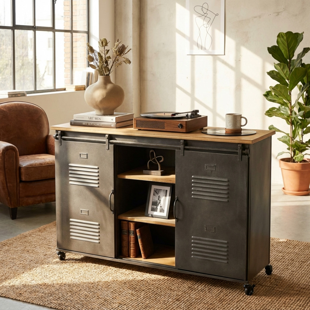 - Dati Tecnici Mobile con 3 ripiani e 2 ante scorrevoli Dimensioni: cm 116 x 40 x 77 h