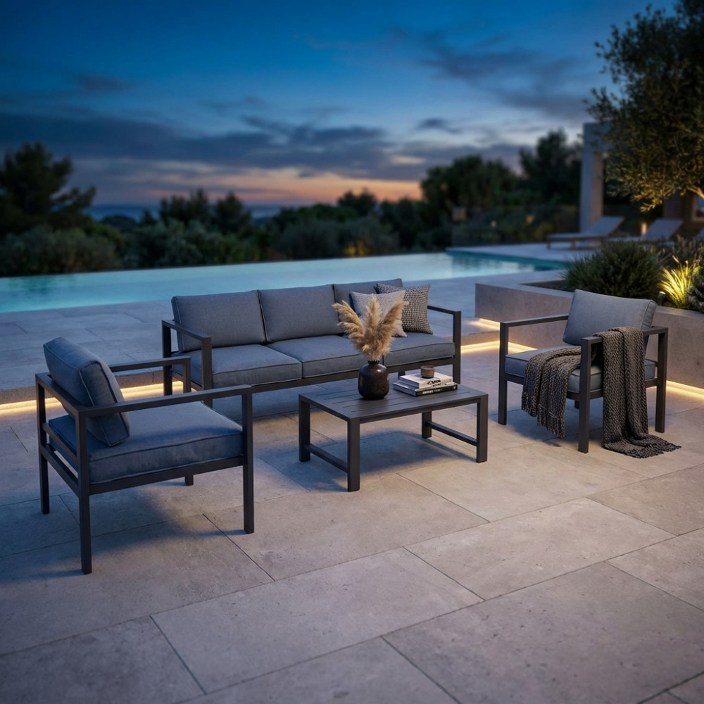 Struttura in allumino BIANCO o TORTORA o TAUPE o ANTRACITE cuscini taupe, per l'antracite cuscini antracite Dimensioni: D.184x70x64/P.68x70x64/T.80x56x35