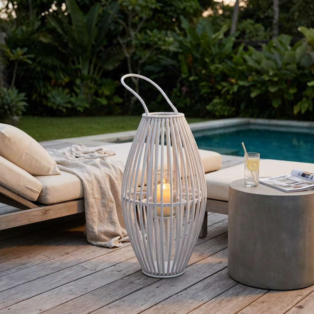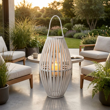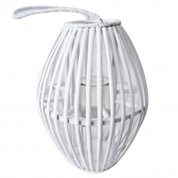 - Dati Tecnici Lanterna BIANCA in vimini e vetro Dimensioni: cmØ37/topØ15,5x80h/vetroØ13x17h