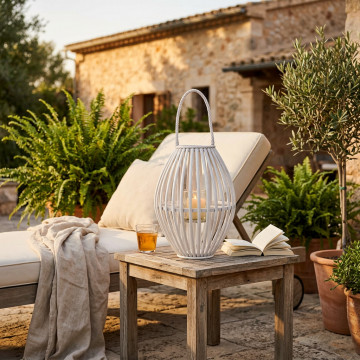- Dati Tecnici Lanterna BIANCA in vimini e vetro Dimensioni: cmØ32/topØ14,5x50h/vetroØ12x12h