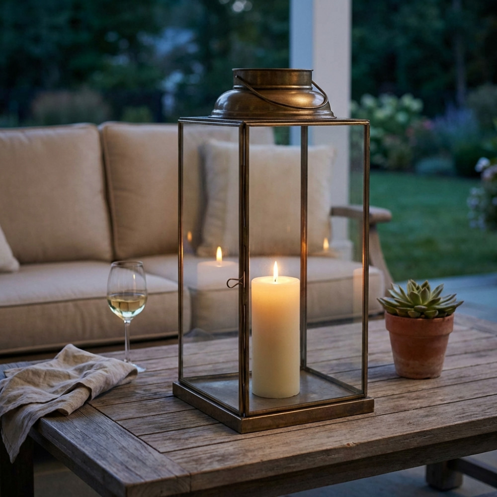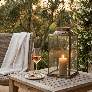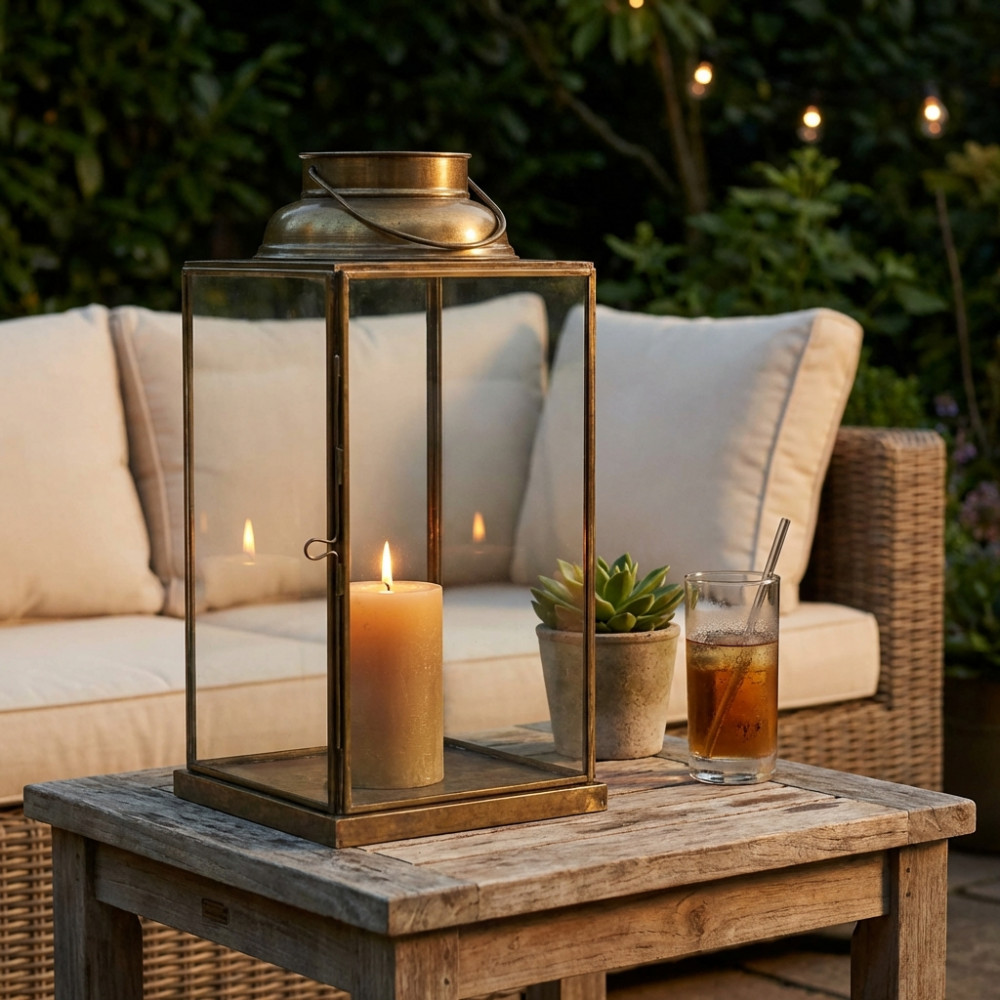 - Dati Tecnici Lanterna OTTONE ANTICO in metallo e vetro Dimensioni: cm 14,5 x 14,5 x 25 h