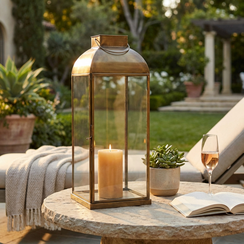 - Dati Tecnici Lanterna OTTONE ANTICO in metallo e vetro Dimensioni: cm 25 x 25 x 70 h