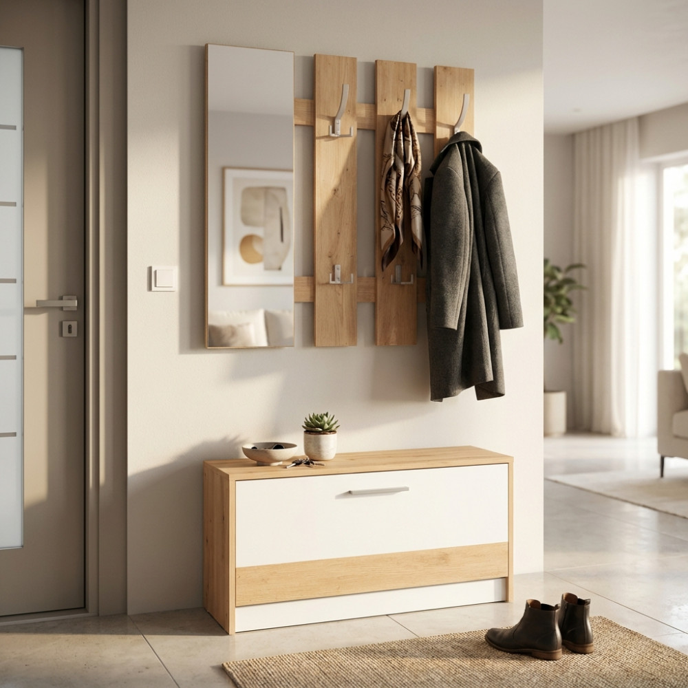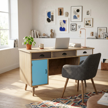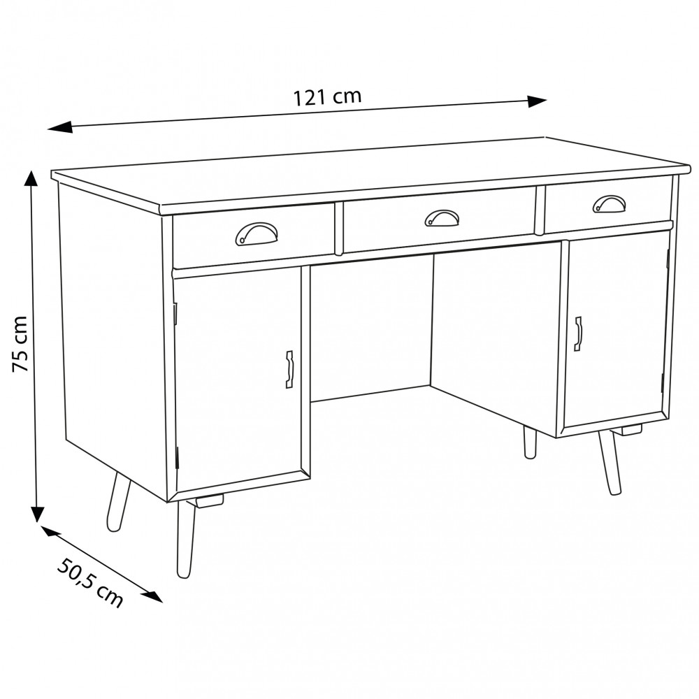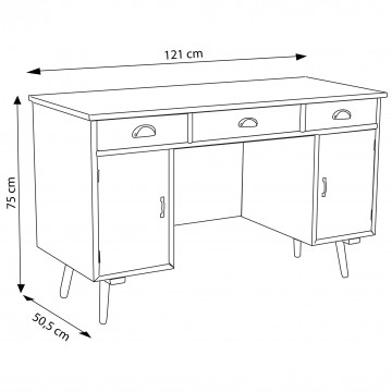 - Dati Tecnici Struttura in MDF, gambe in legno di pino, top colore NATURALE 2 ante e 3 cassetti colorati Dimensioni: cm 121 x 50,5 x 75 h