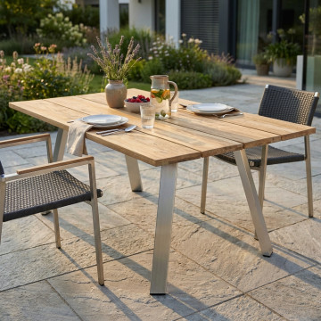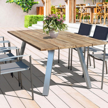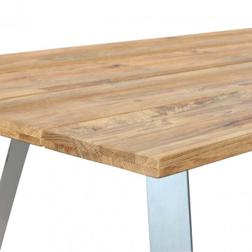 - Dati Tecnici Struttura in alluminio SPAZZOLATO piano del tavolo in TEAK riciclato 3 cm Gambe 8 x 4 x 2 cm Dimensioni: cm 200 x 100 x 74 h