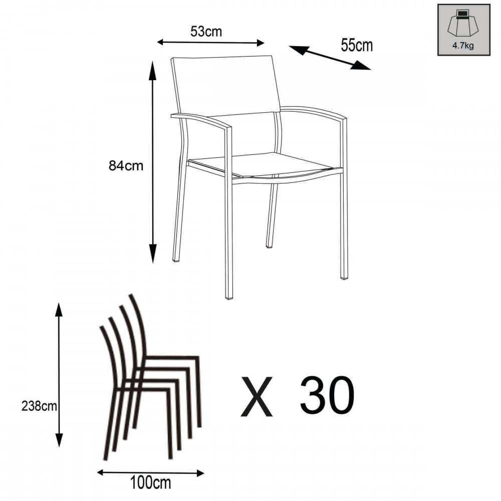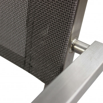 - Dati Tecnici Struttura in acciaio inox schienale e seduta in textilene grigio Dimensioni: cm 56 x 57 x 89 h
