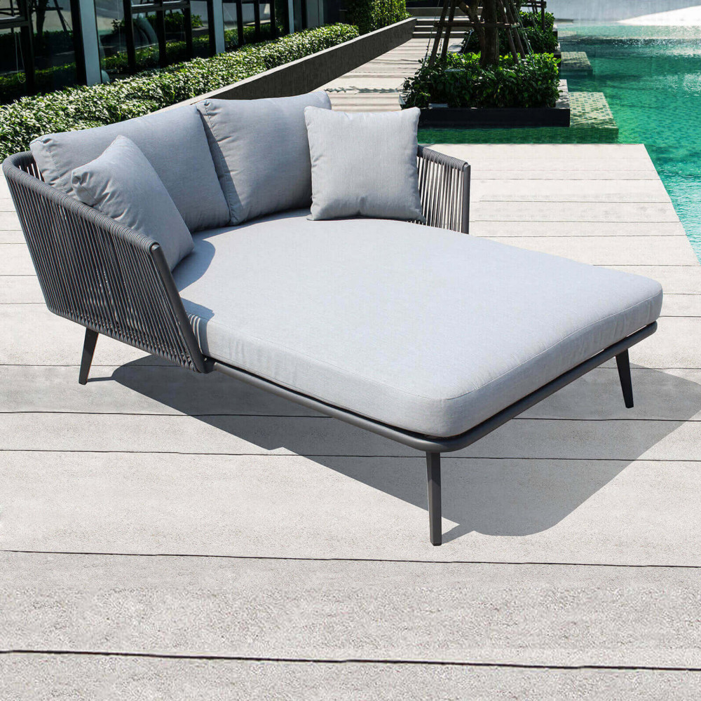 - Dati Tecnici Struttura in alluminio verniciato ANTRACITE schienale in corda da Ø 6 mm ANTRACITE cuscini grigio scuro Dimensioni: cm 139 x 160 x 70 h