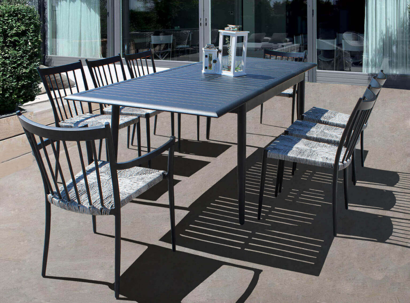 Struttura e piano in alluminio verniciato antracite dimensioni: cm 200/300 x 90 x 76 h