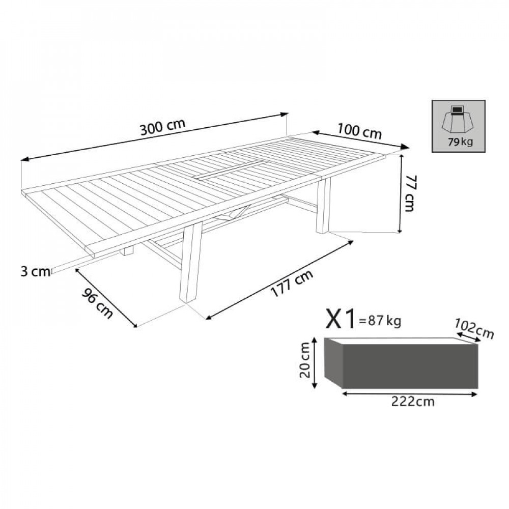 Tavolo in teak Dimensioni: cm.220/300 x 100 x 77 h
