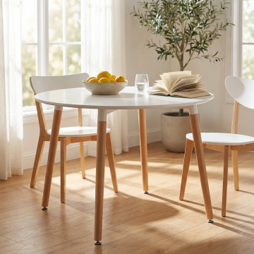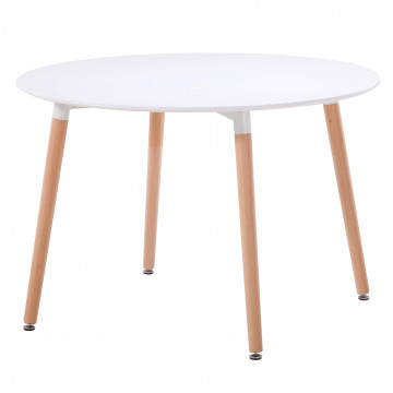 Piano in ABS colore bianco, gambe in legno Dimensioni: cm Ø 120 x 75 h