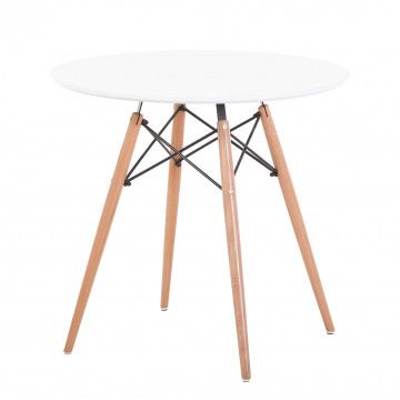 - Dati Tecnici Piano in ABS colore bianco, gambe in legno Dimensioni: cm Ø 80 x 75 h