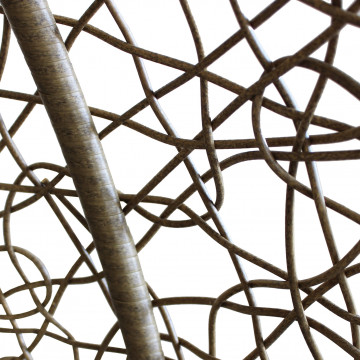 Struttura in metallo tortora opaco seduta in wicker GRIGIO o BIANCO o NATURALE tubi in metallo 42 x 2,5 mm base 42 x1,5 mm cuscino poliestere in tinta Dimensioni: Struttura Ø 105 x 195h seduta 105 x 71 x 118
