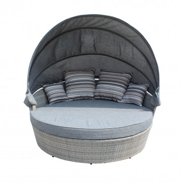 Struttura in alluminio, wicker GRIGIO materiale UV protection, cuscini 10 cm con 2 cuscini 40 x 40 cm e 2 60 x 60 cm Dimensioni: cm Ø 180 x 80 h