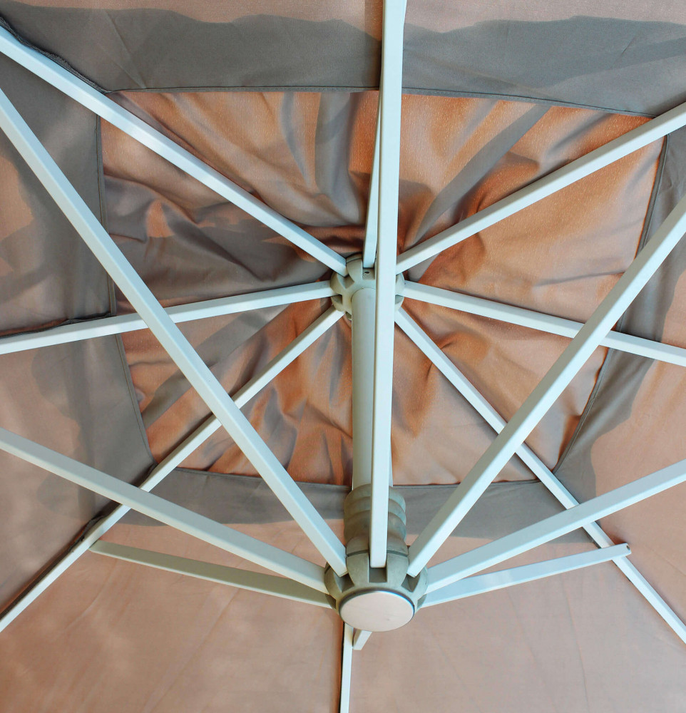 Telo in poliestere TORTORA 235 gr palo in alluminio 65x65 mm color BIANCO noce di abs 115mm con carrucola 8 stecche in alluminio 17 x 22 mm Dimensioni: m 3 x 3