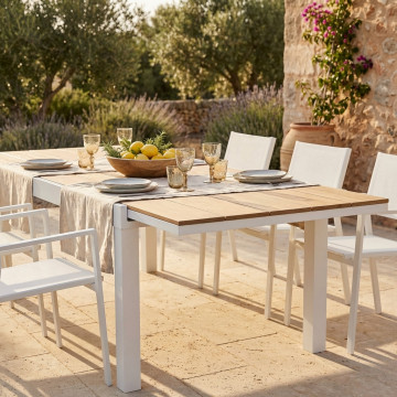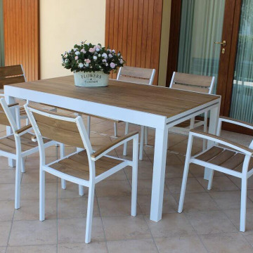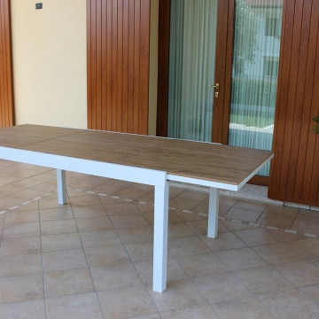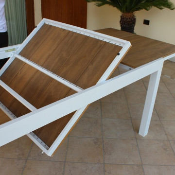 Struttura in alluminio BIANCO o TAUPE piano in polywood color TEAK Dimensioni: cm 200/300 x 95 x 74 h