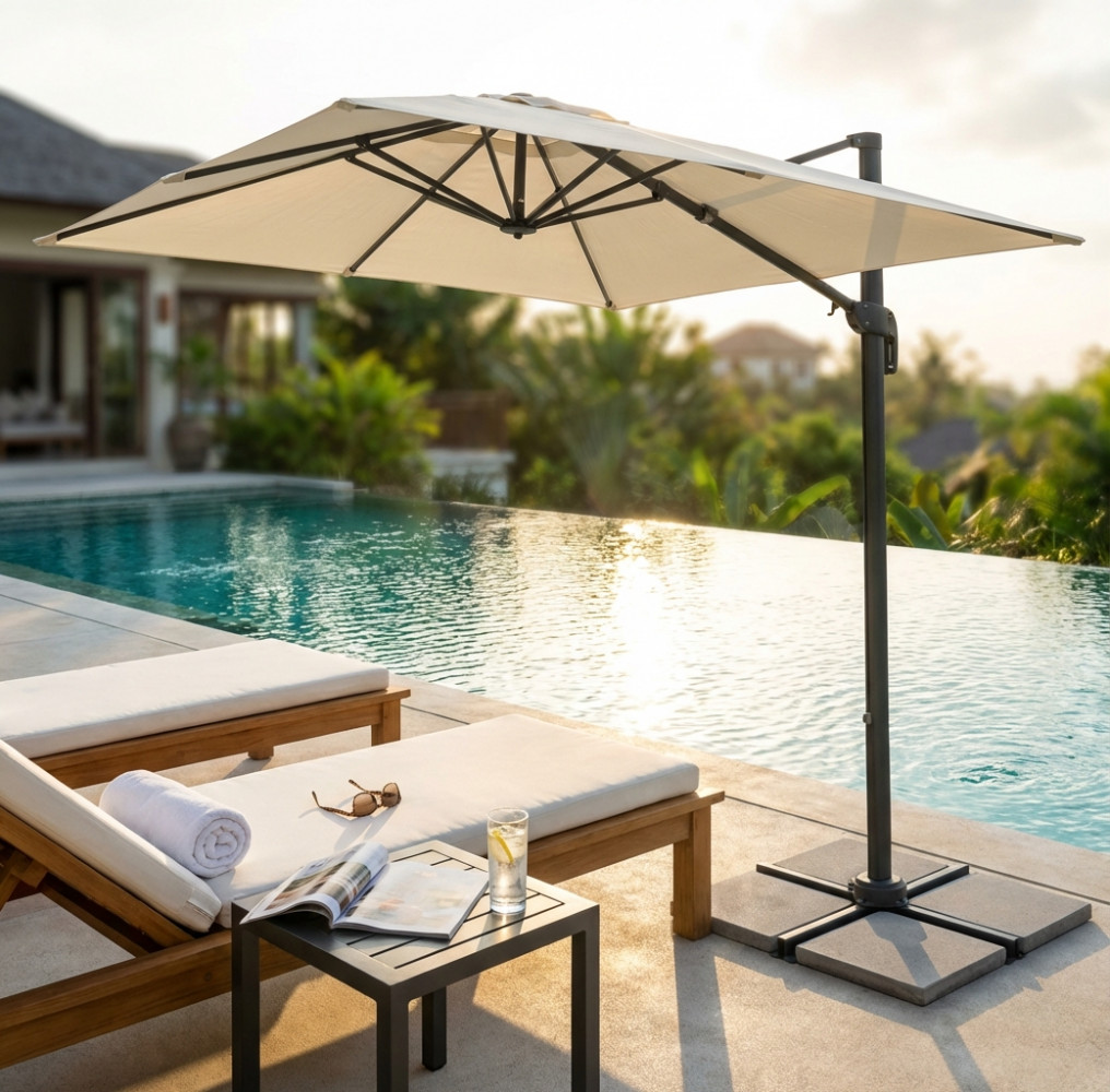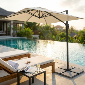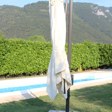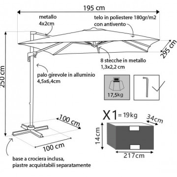 Telo in poliestere ECRU 180 gr con antivento palo girevole in alluminio 45x64 e in metallo 20x40 mm 8 stecche metallo 13 x 22 mm, base a crociera Dimensioni: m 2 x 3