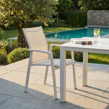 Struttura in allumino BIANCO o TORTORA o TAUPE o ANTRACITE seduta e schienale in textilene Dimensioni: cm 57 x 61 x 89 h