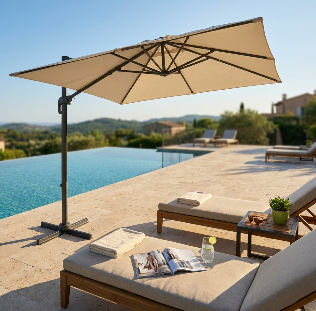 OMBRELLONE NEWTON NERO P/L 3 X 3 TELO ECRU