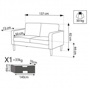 - Dati Tecnici Divano GRIGIO CHIARO o GRIGIO SCURO o BLU o BEIGE gambe in polipropilene Dimensioni: cm 137 x 73 x 82 h