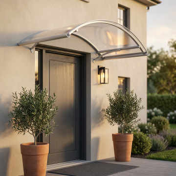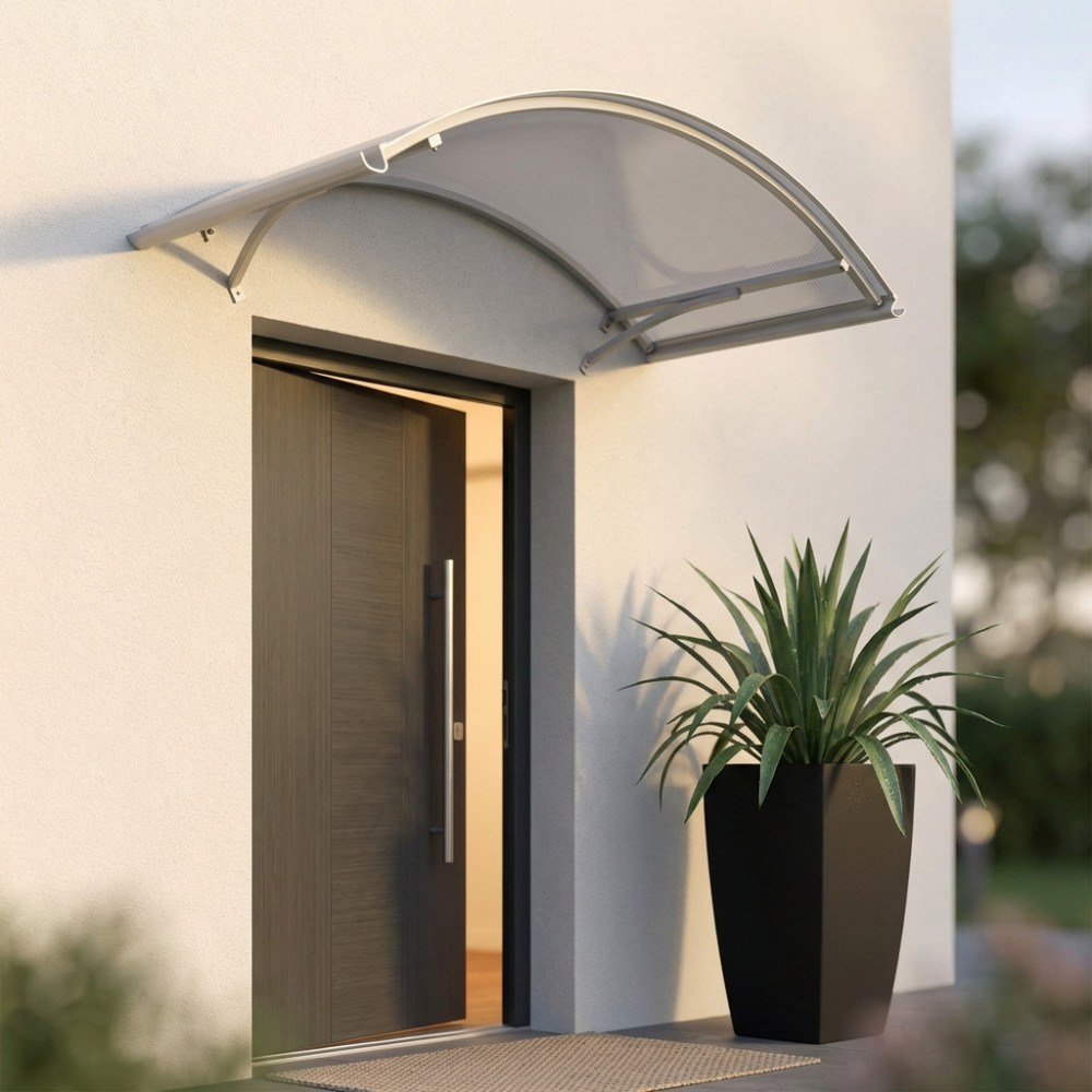 Pensilina con braccetti in ALLUMINIO GRIGIO Policarbonato 2 mm Dimensioni: cm 90 x 140 / P.90 x 140