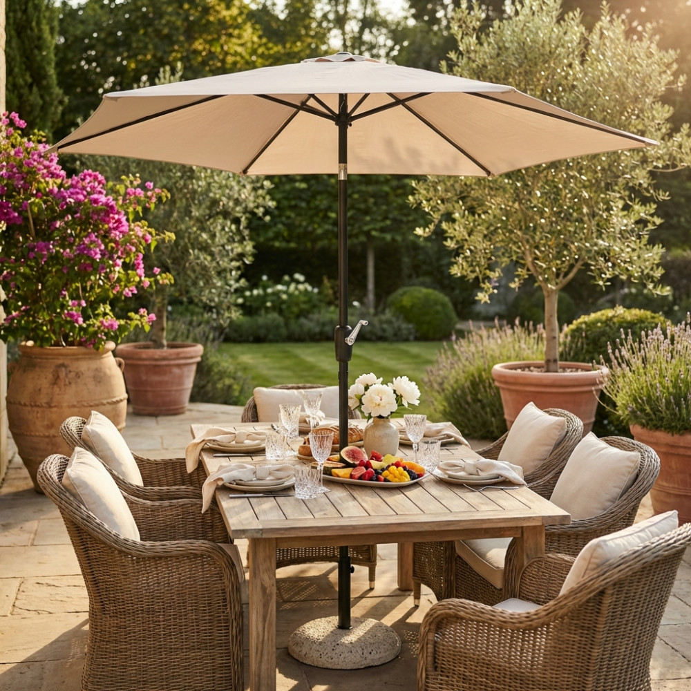 OMBRELLONE POLY ECO Ø 3 PALO NERO TELO BEIGE