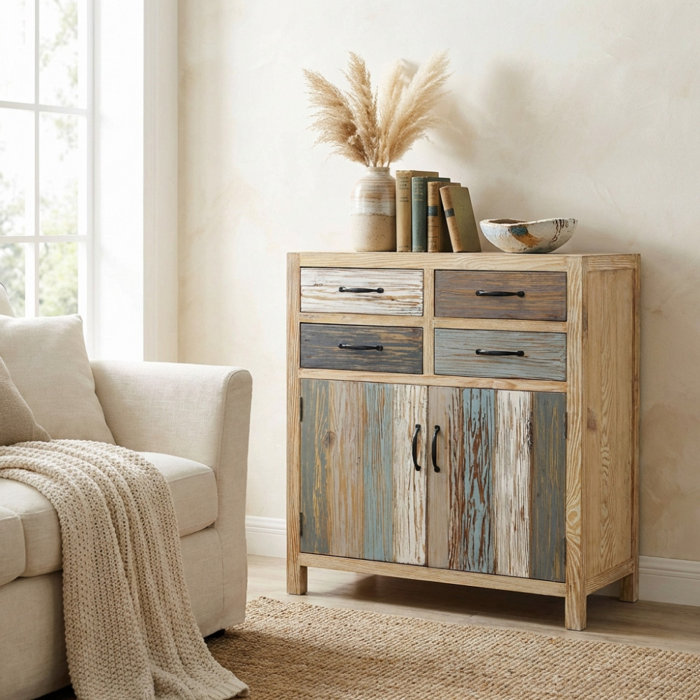 - Dati Tecnici Mobile con 4 cassetti e 2 ante in legno colorato Dimensioni: cm 78 x 39 x 93 h