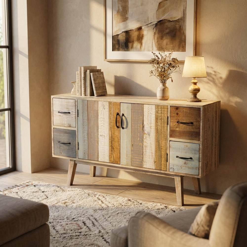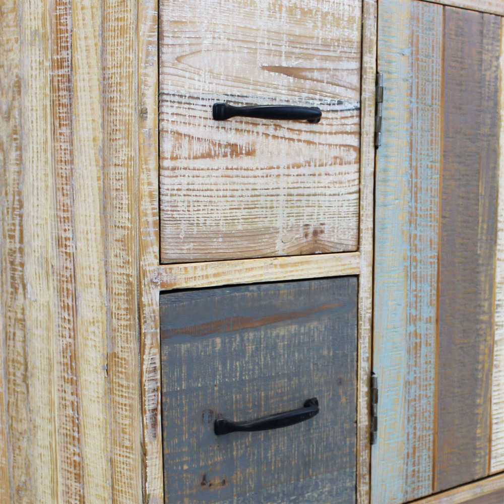 - Dati Tecnici Mobile con 4 cassetti e 2 ante in legno colorato Dimensioni: cm 131 x 40 x 77 h