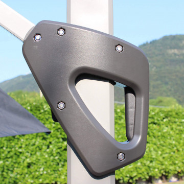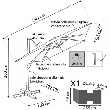 Telo in poliestere GRIGIO 250 gr con antivento palo girevole in alluminio 58x88 e 40x25 mm 8 stecche alluminio 14 x 24 mm, base a crociera Dimensioni: m 3 x 4
