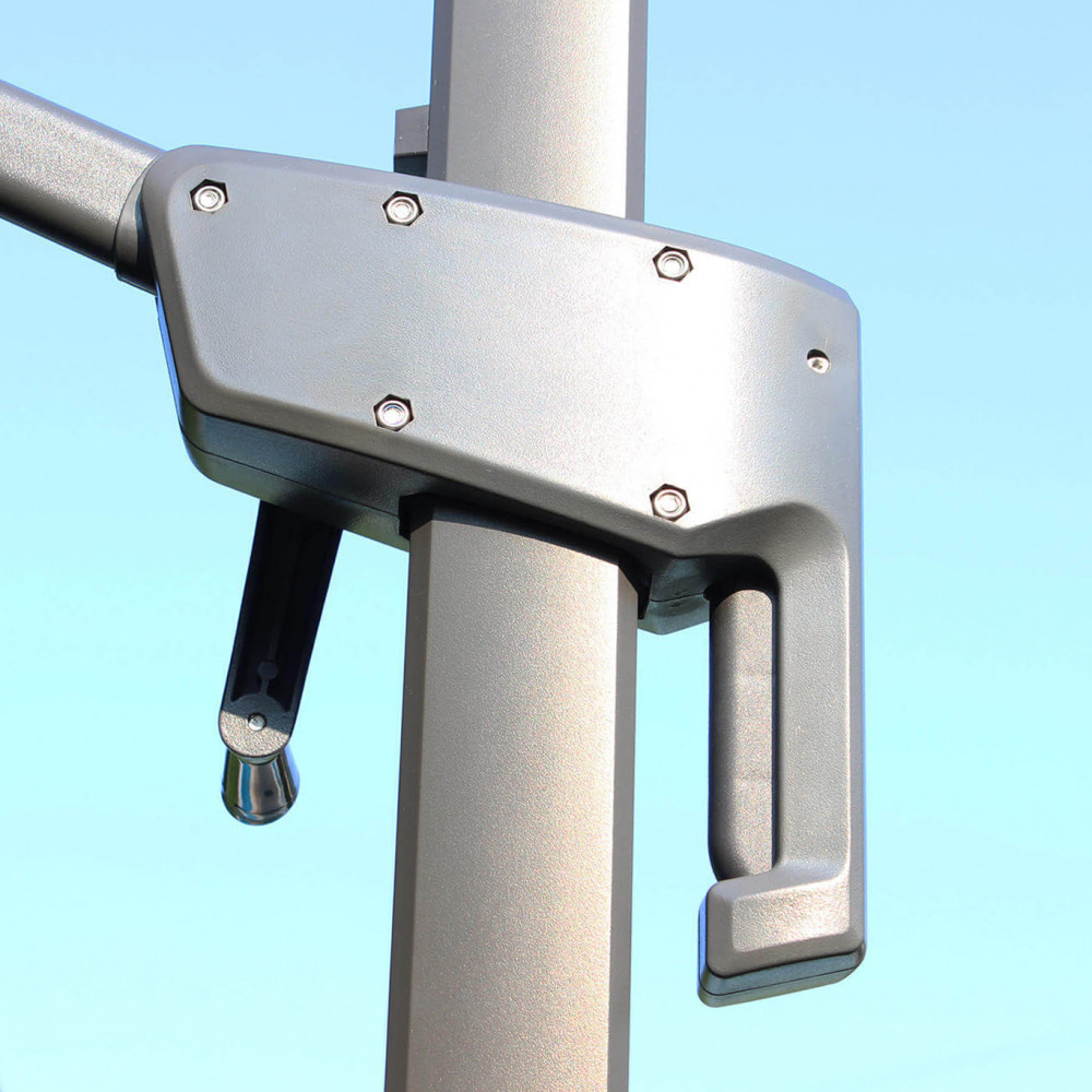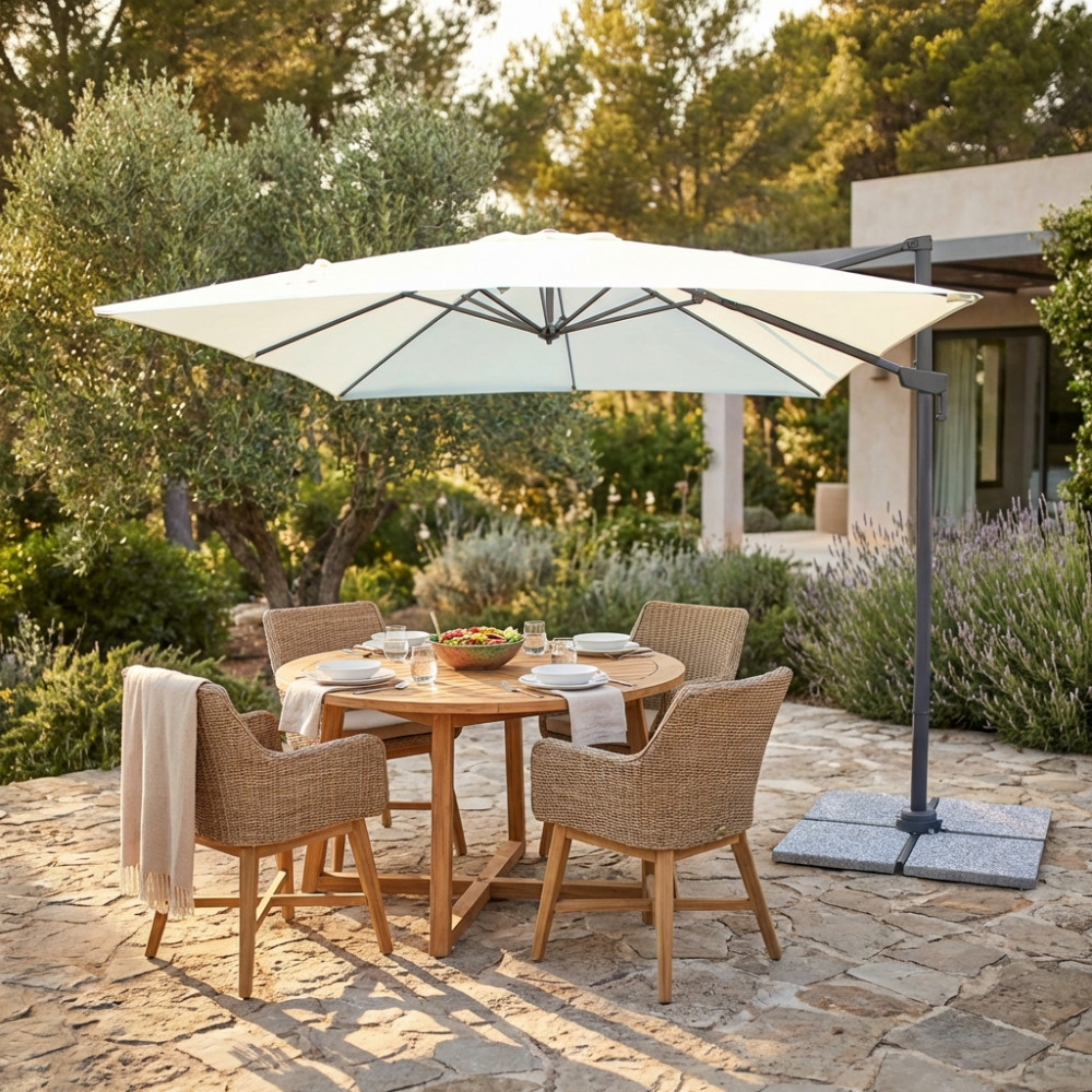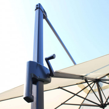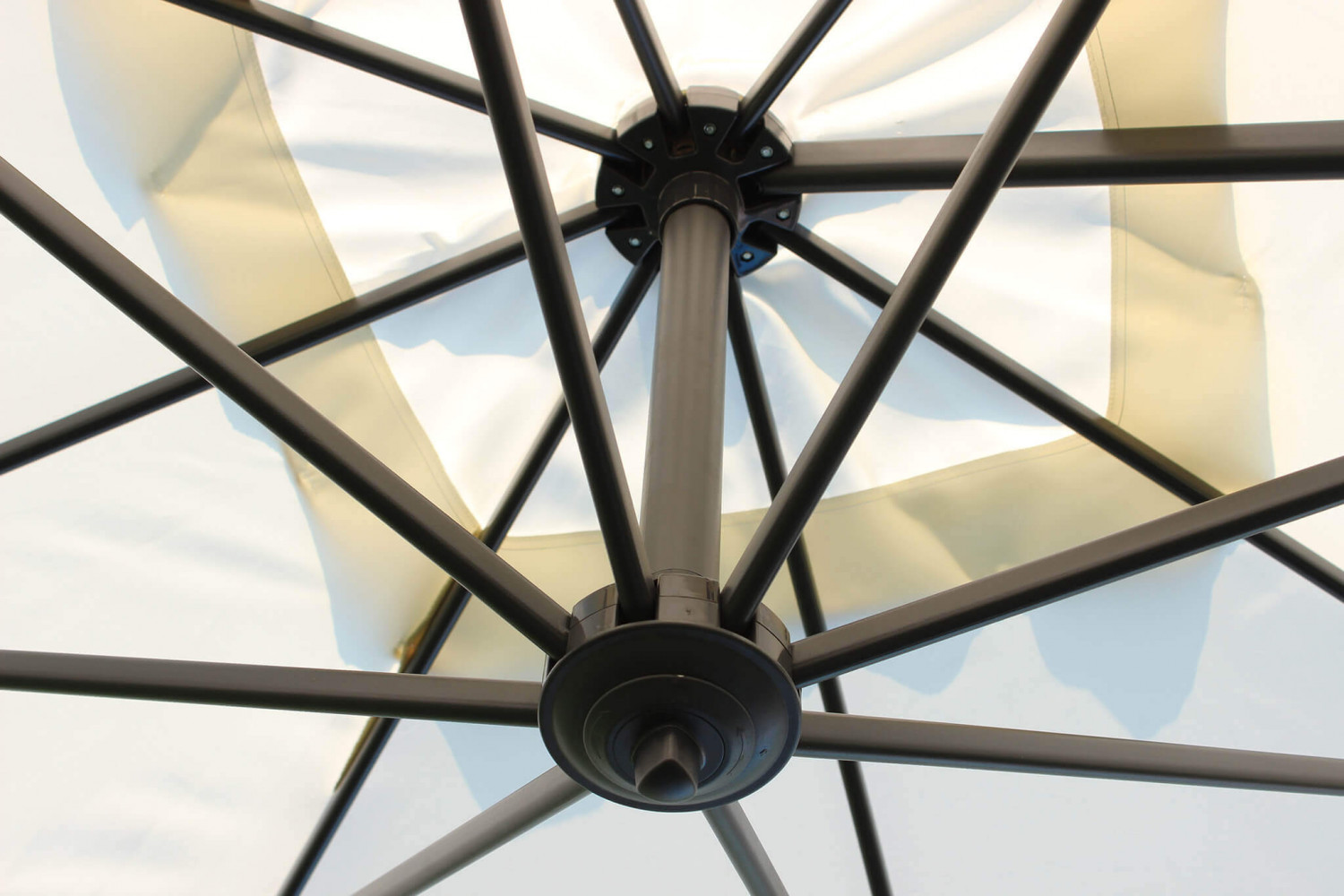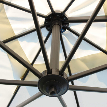 Telo in poliestere ECRU 180 gr con antivento palo girevole in alluminio 45x64 e in metallo 20x40 mm 8 stecche metallo 13 x 22 mm, base a crociera Dimensioni: m 3 x 3