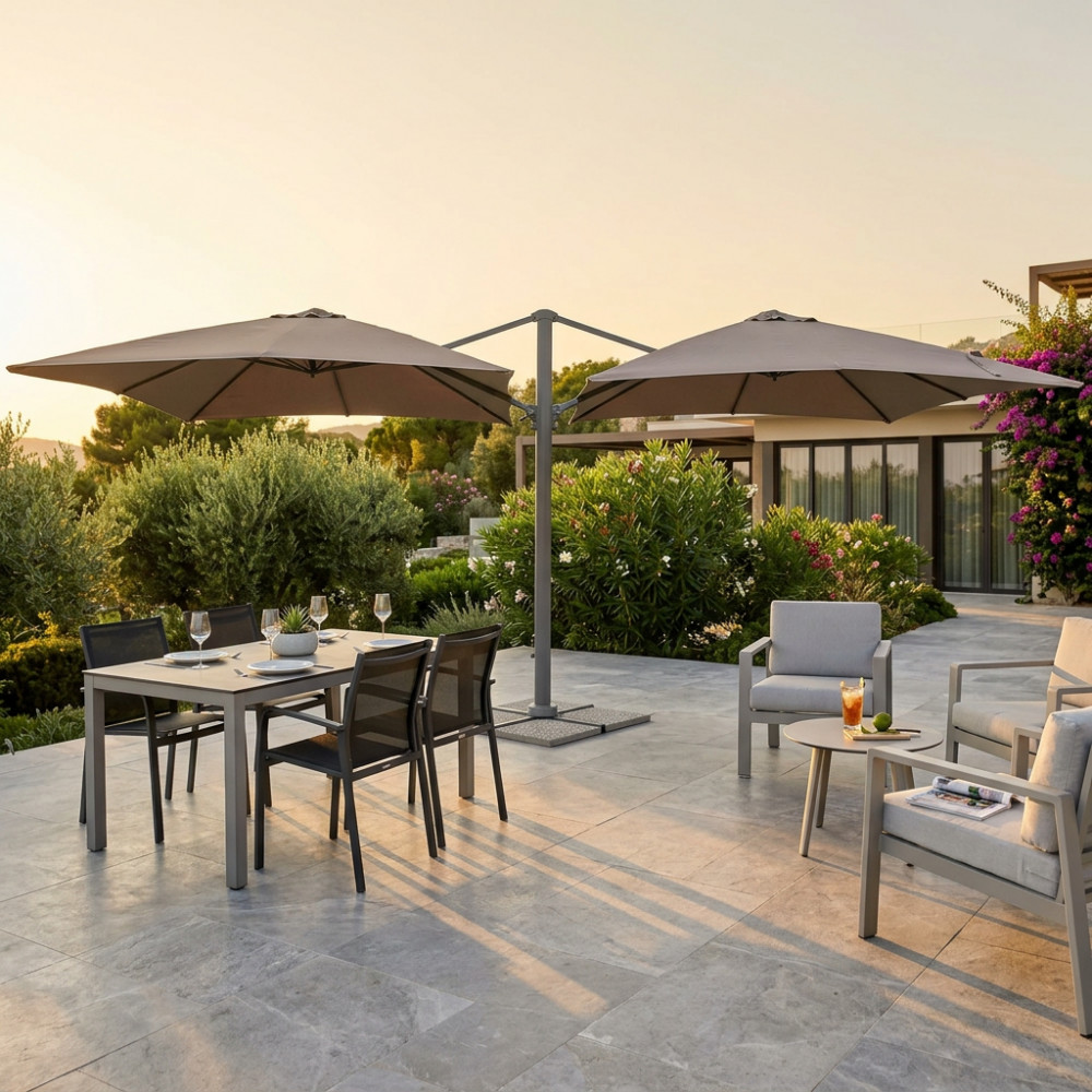 OMBRELLONE DOPPIO 3 X 3 ARCHIMEDE ANTRACITE TELO TAUPE