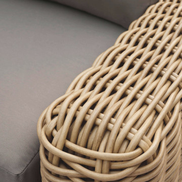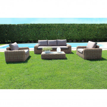 Struttura in alluminio, wicker NATURALE cuscini marroni 12 cm vetro tavolino 8 mm Dimensioni: D.220x85x62/P.110x85x62/T.110x60x28
