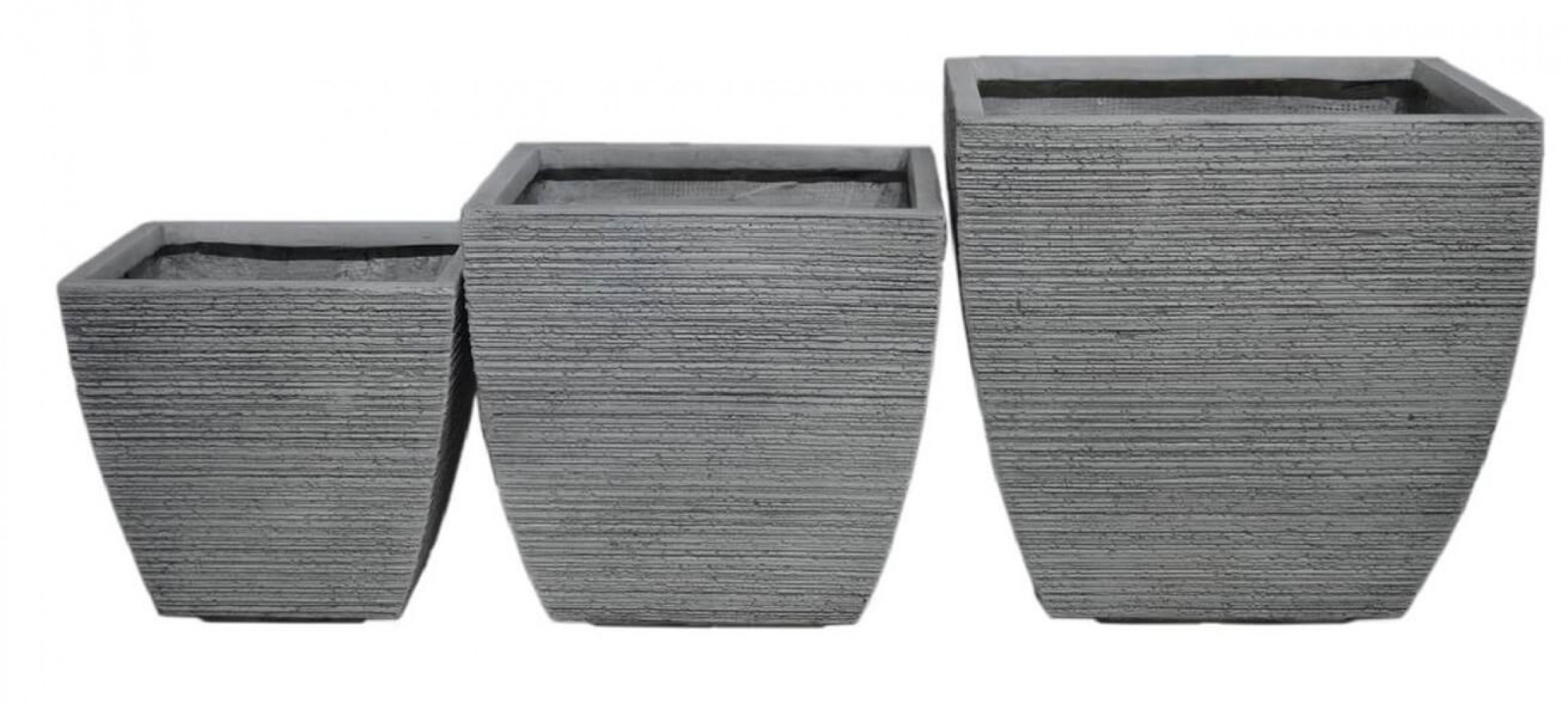 - Dati Tecnici Set di 3 vasi in fibra di sintetica GRIGIA Dimensioni: G.44,5x44,5x44/M.37,5x37,5x37/P.31x31x30