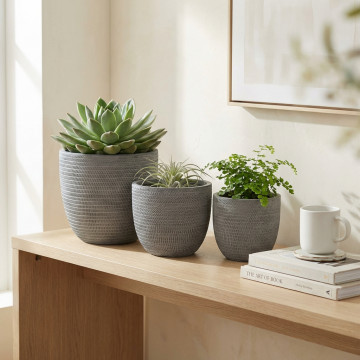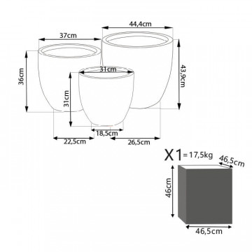 - Dati Tecnici Set di 3 vasi in fibra di sintetica GRIGIA Dimensioni: G.44,5x44,5x43/M.37,5x37,5x36/P.31,5x31,5x30,5